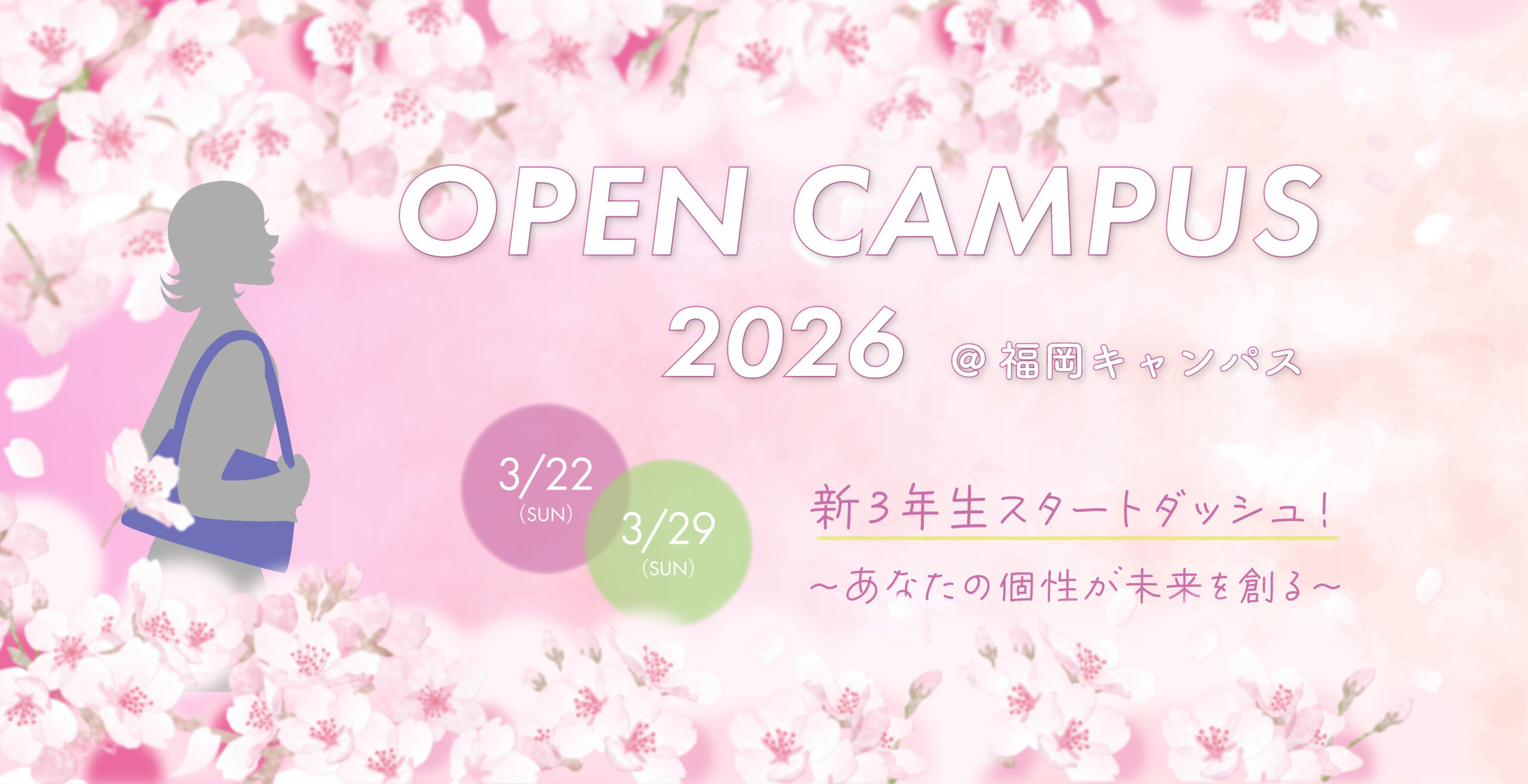 【3月22日・29日】福岡キャンパスで「OPEN CAMPUS 2026 新3年生スタートダッシュ!〜あなたの個性が未来を創る〜」を開催