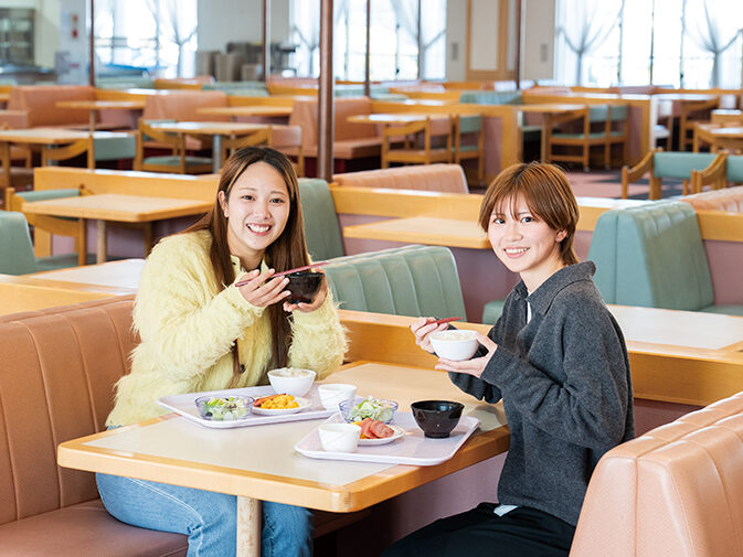 ホテル出身の料理長が腕を振るう学生食堂は、おしゃれで開放的な広々空間。