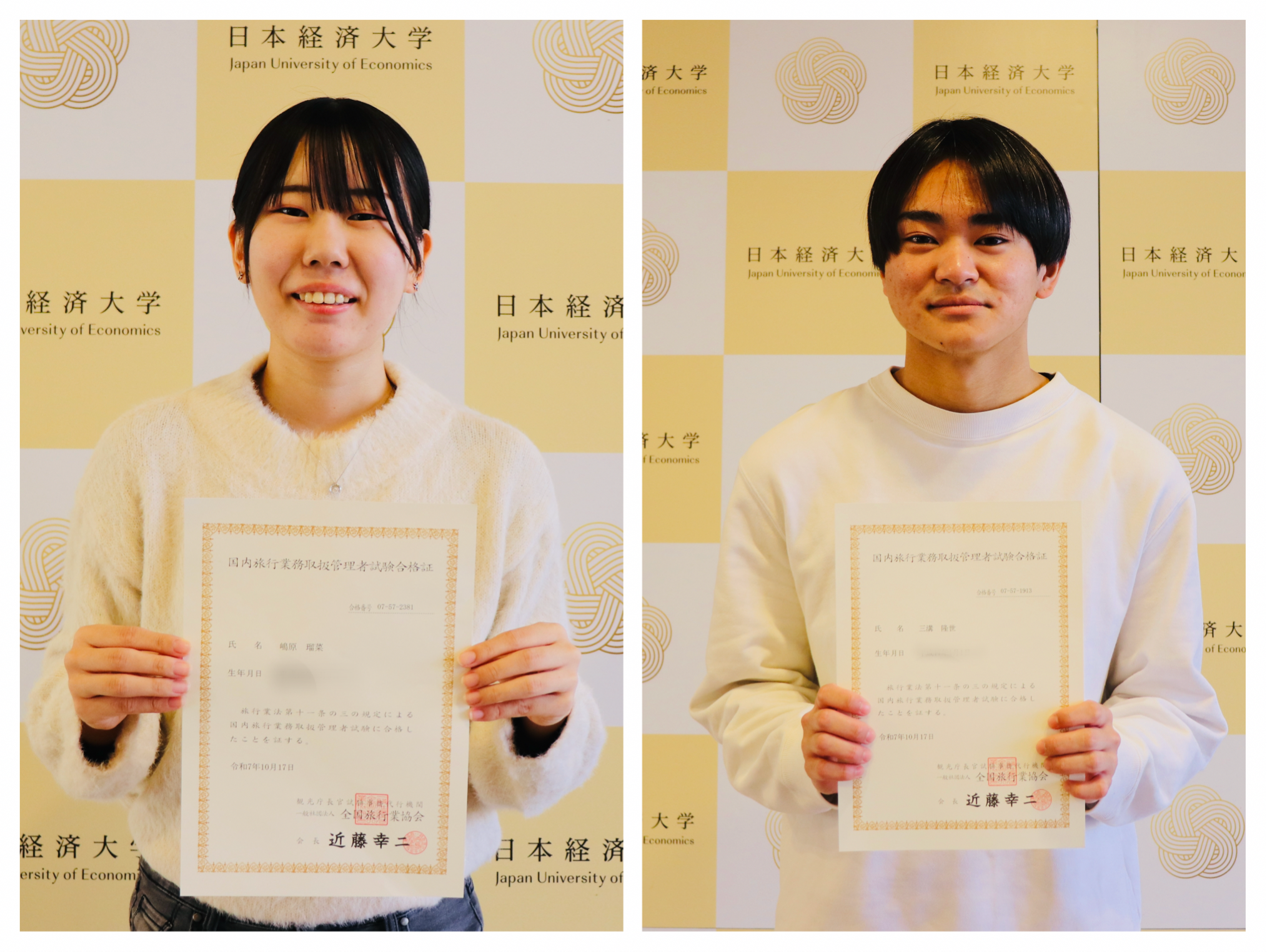 国内旅行業務取扱管理者に学生2人が合格
