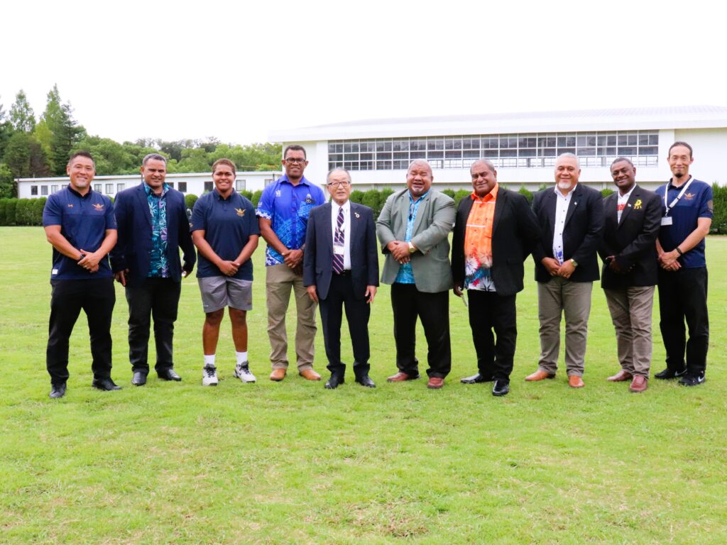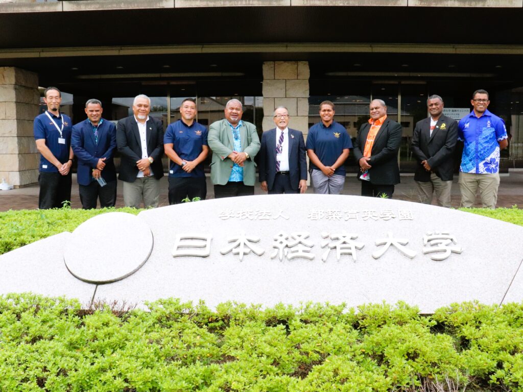 フィジーからジェセ・サウクル青年スポーツ大臣、国立スポーツ委員会上級スポーツ開発担当者、スポーツ評議会CEOなど6人が、本学に視察のため来校しました。フィジーから本学への留学生で女子ラグビー部所属のララバラブ ナビュ ウナイシさん(グローバルビジネス学科2年)も同行し、学内を案内しました。