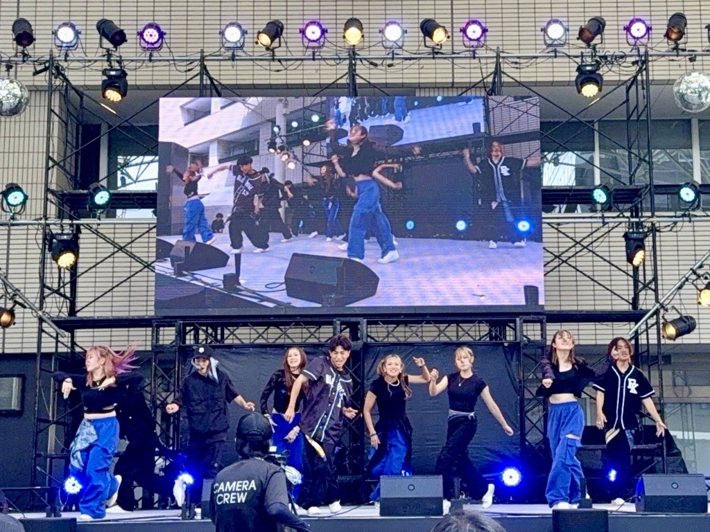 福岡の大学生、高校生が多く集まる中、パフォーマンス後のインタビューにて本学の学園祭(太宰府祭)の宣伝を行いました。