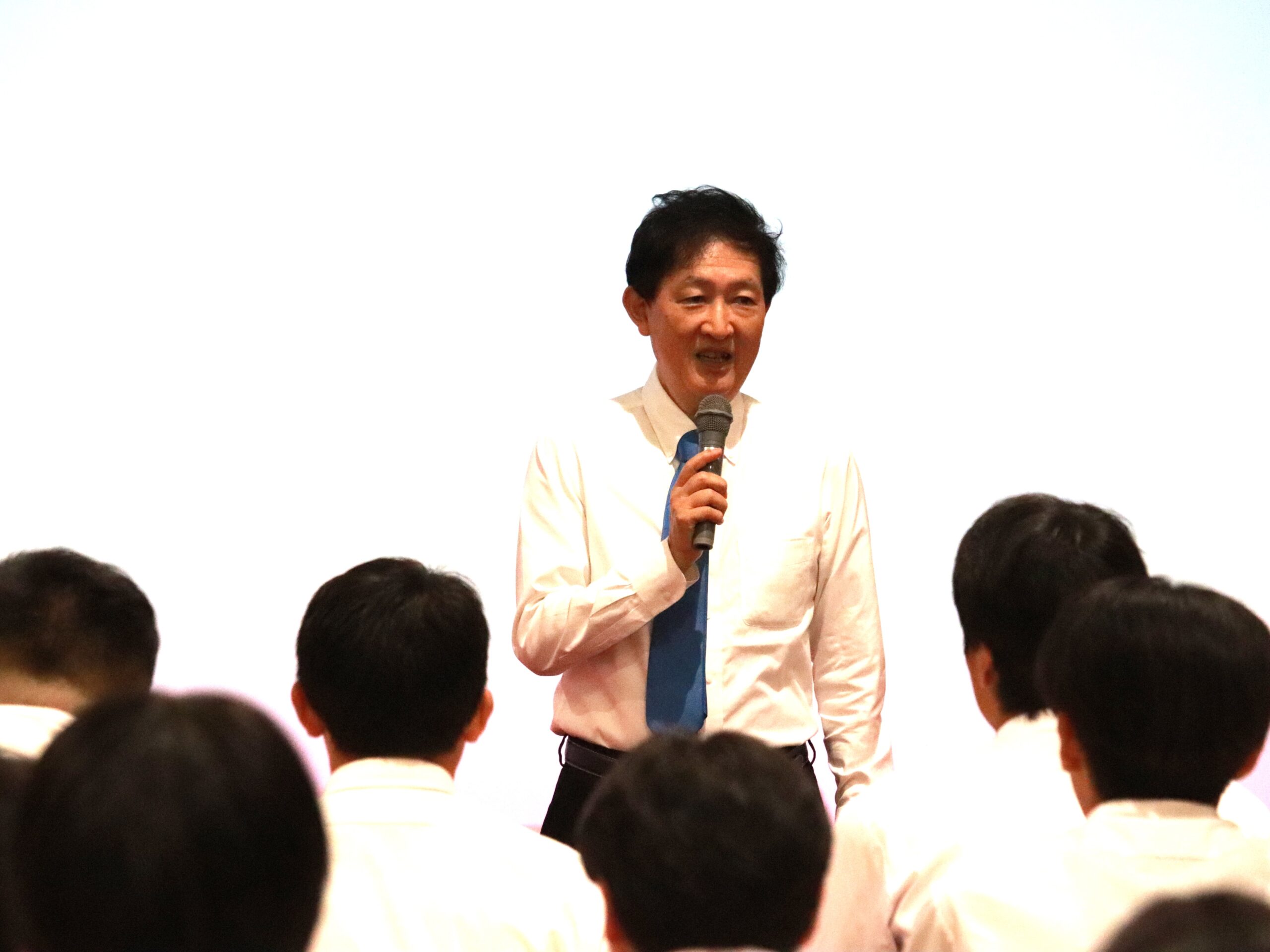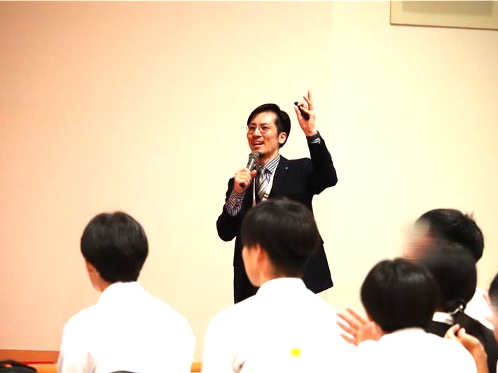 金井 昌平副学長が「今日の学びを通して、皆さんが自分自身の興味や価値観、将来の夢について少しでも深く考えるきっかけになれば嬉しいです」とあいさつ。経済学部健康スポーツ経営学科の渡邊 裕也准教授が本学の概要を説明しました。
