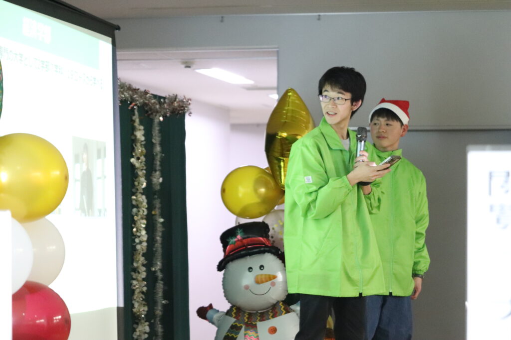 ステージでは、各学校が特色などを紹介。本学は、太宰府キャンパスネットワーク会議学生連絡会委員も務めるの朝倉匠巳さん(経営学科3年)との、中川郁士さん(経済学科4年)が紹介しました。
