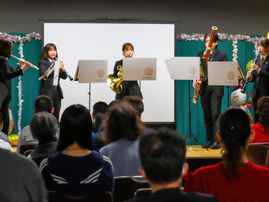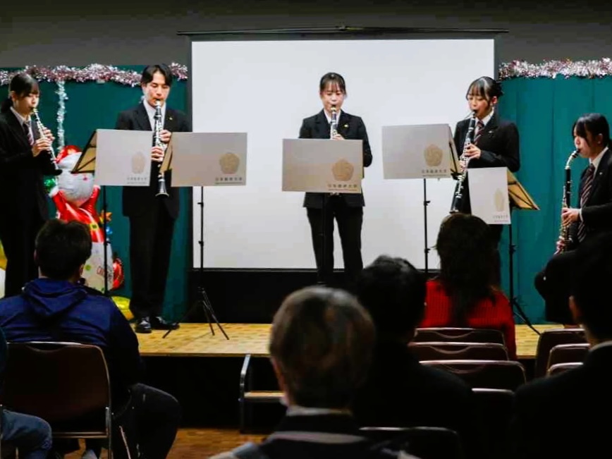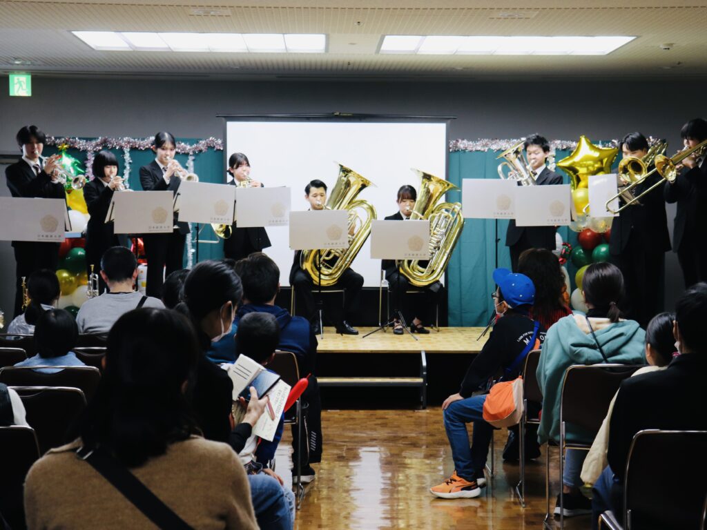 吹奏楽部は「魔女の宅急便メドレー」や「天空の城ラピュタのテーマ」など、名曲を含む全10曲を披露しました。会場は豊かな音色に包まれ、来場者の皆さんも心をひとつにして楽しむひとときとなりました。