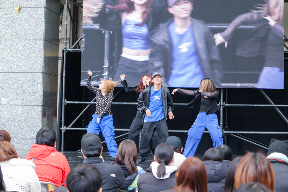 ダンスパフォーマンスを披露したのち、来場者に本学のブースをPRしました。