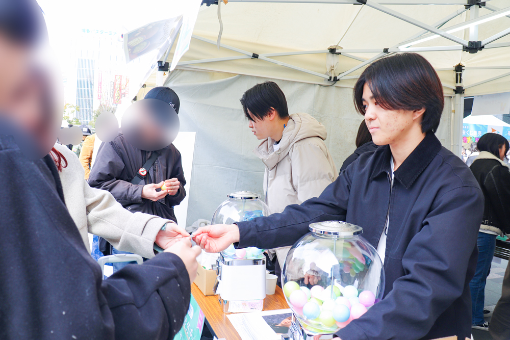 本学のブースでは、公式LINEを友だち登録した方を対象に、SNSで話題のスイーツ「ドバイチョコ餅」やカフェのチケットなどが当たる限定のカプセル抽選を開催しました。