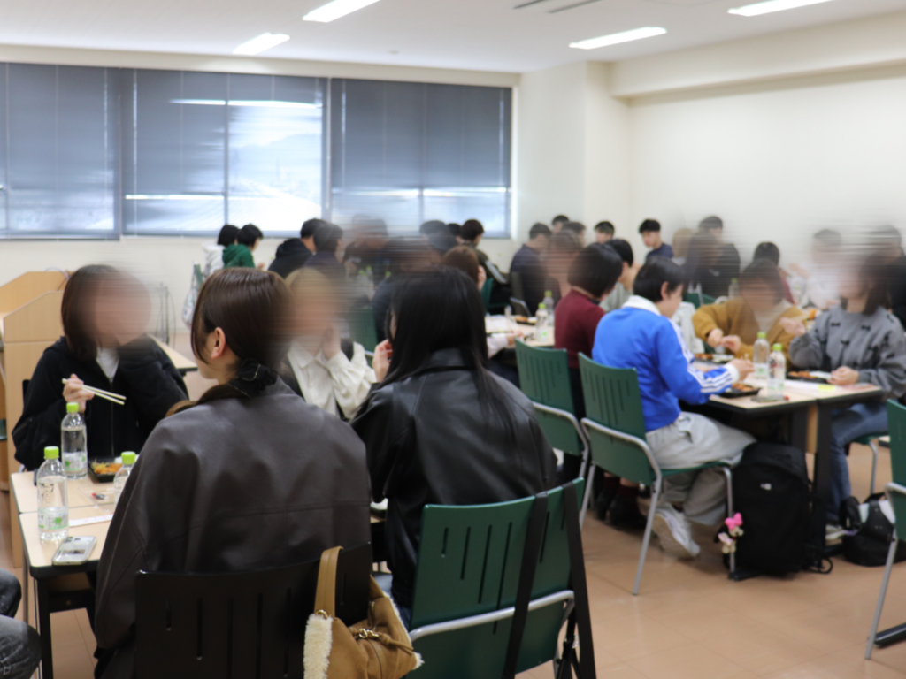 昼食時間には、出身県・地域別に分かれて交流の時間を設け、サポートの学生も参加しました。新入生にとって同学年の学生や、先輩学生と直接話ができる機会となり、和やかな雰囲気の中で交流が進みました。