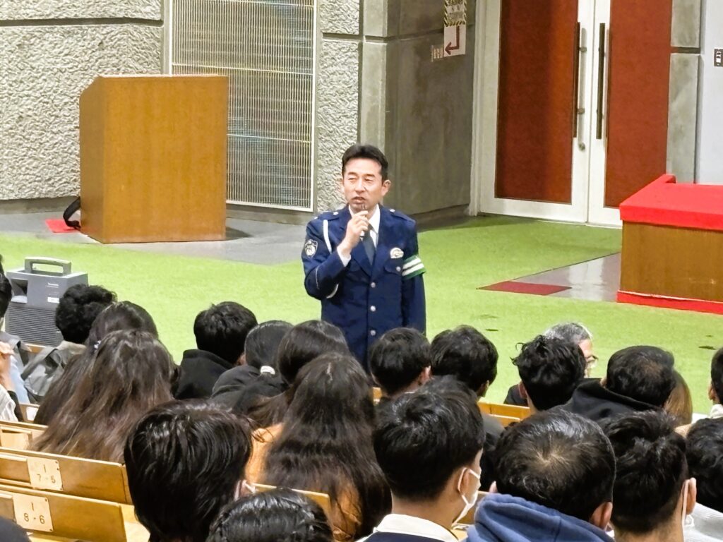 また、福岡県警筑紫野警察署の方が来校し、交通ルールや防犯についてのお話をしていただきました。