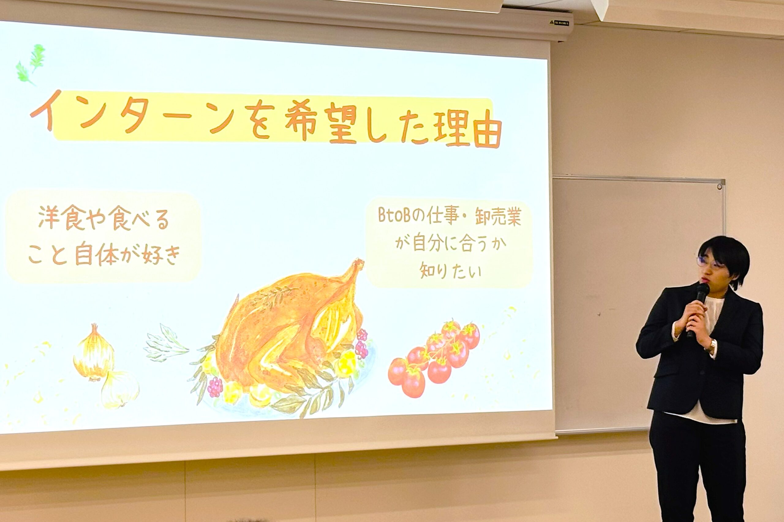 インターンシップにご協力くださった企業の皆さまに、心より感謝申し上げます。学生たちは、実際の現場での学びを通して多くの刺激を受け、大きく成長することができました。発表会では、それぞれの実習を振り返り、自信をもって成果を共有する姿がとても印象的でした。この経験は、今後のキャリア形成において必ず力になると思います。