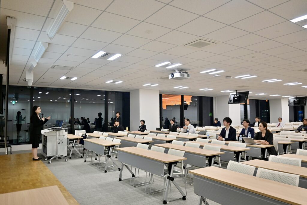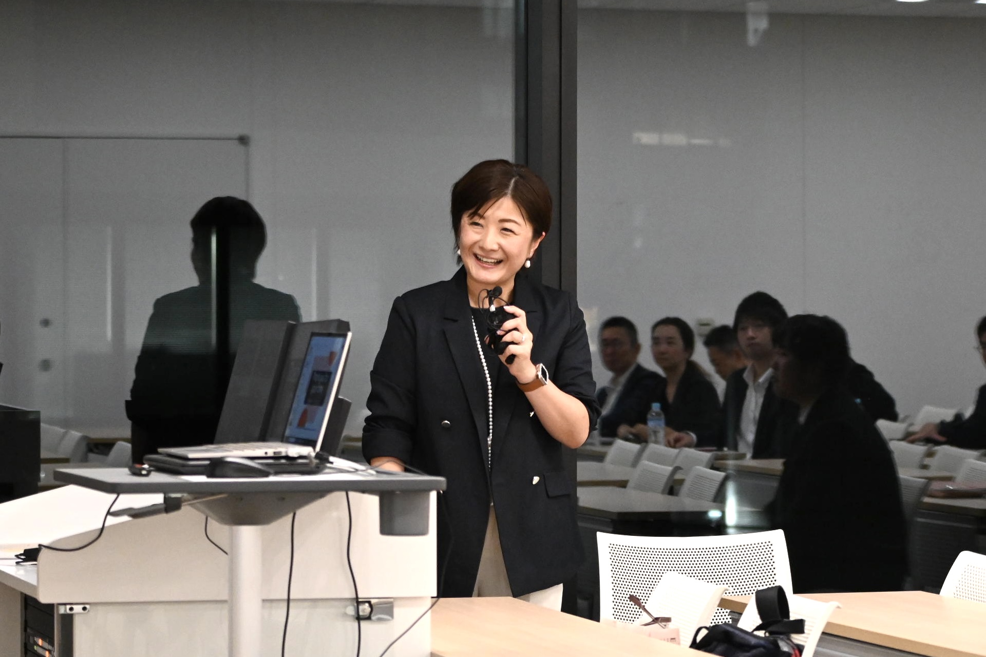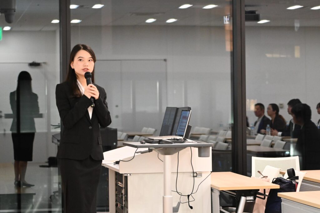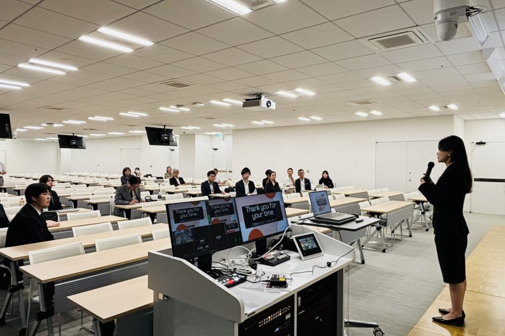 東京渋谷キャンパス・鎌田 雅子 准教授の「インターンシップ実習」で、今年度インターンシップに参加した学生による成果発表会を開催しました。当日は、宮坂 佳成さん、吉田 梨恩さん、笠原 翼さん、レヌイさんの4名が登壇し、実習先での活動内容や学びの成果を発表しました。会場には、学生を受け入れてくださった企業の皆さまにも多数ご参加いただき、励ましの言葉をいただきました。真剣な面持ちで発表する学生の姿に目頭を熱くされる企業担当の方も見られ、企業の皆さまと教員が共に成長を見守る温かい時間となりました。ご協力くださった企業の皆さまに、心より御礼申し上げます。