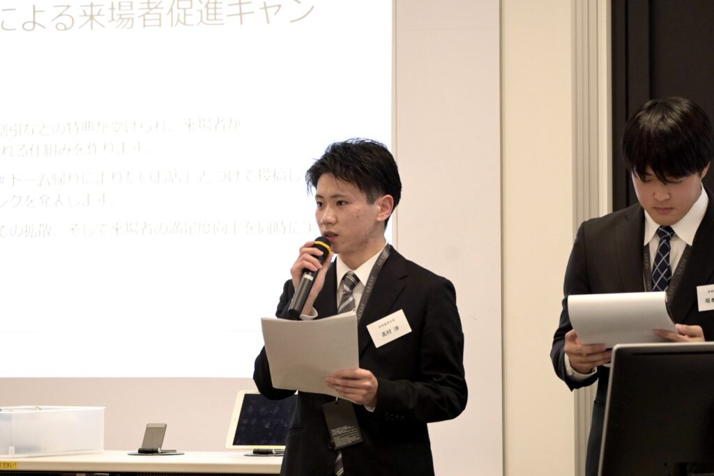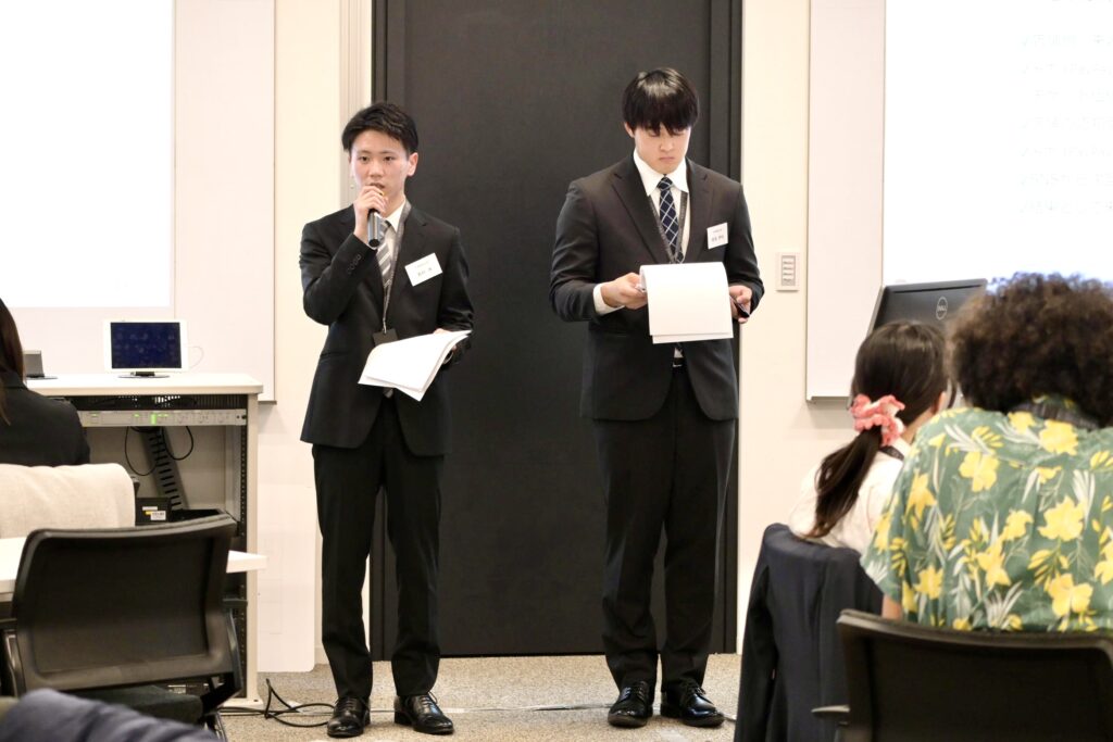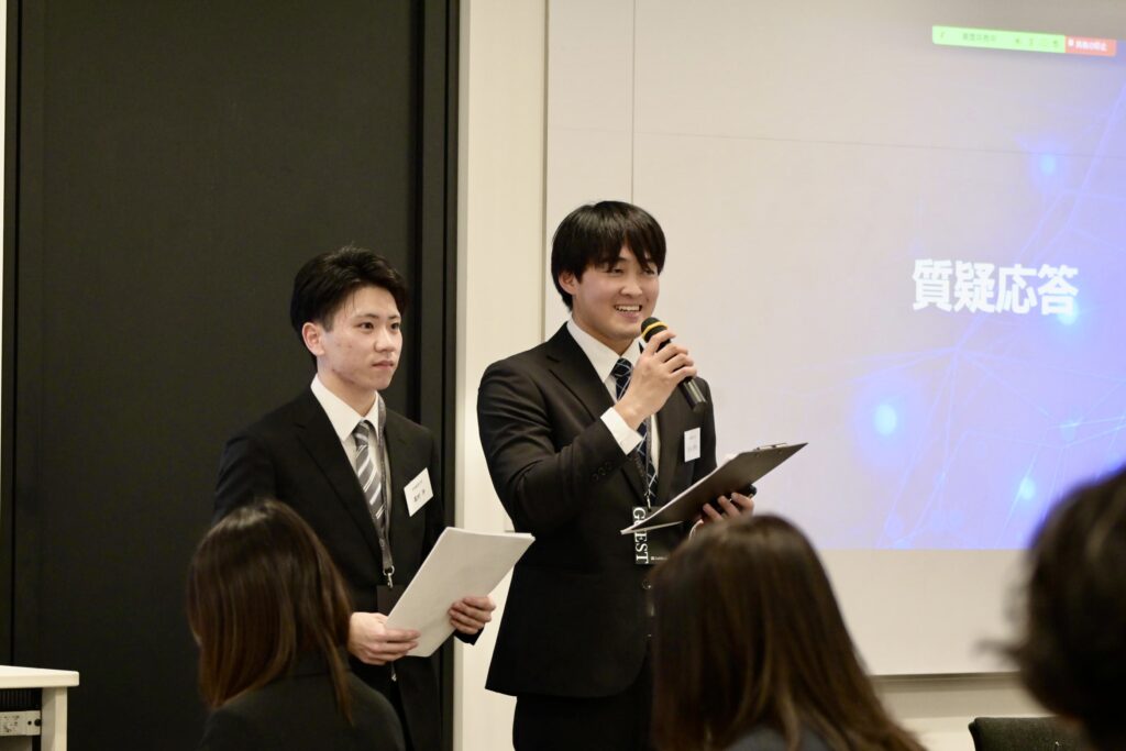 坂本伊吹さんは、「今回のプレゼンテーションを通して、相手に伝えるための構成や根拠の大切さを改めて実感しました。実際に企業の方からご意見をいただいたことで、自分の考えを見直す良い機会にもなりました」と振り返りました。また、髙村渉さんは、「緊張もあり、聞き手にしっかり伝えるプレゼンにはまだ課題があると感じましたが、多くの方からフィードバックをいただき、非常に貴重な経験となりました。いただいたアドバイスを今後に生かしていきたいです」と語り、両名ともに充実した学びを得た様子がうかがえました。