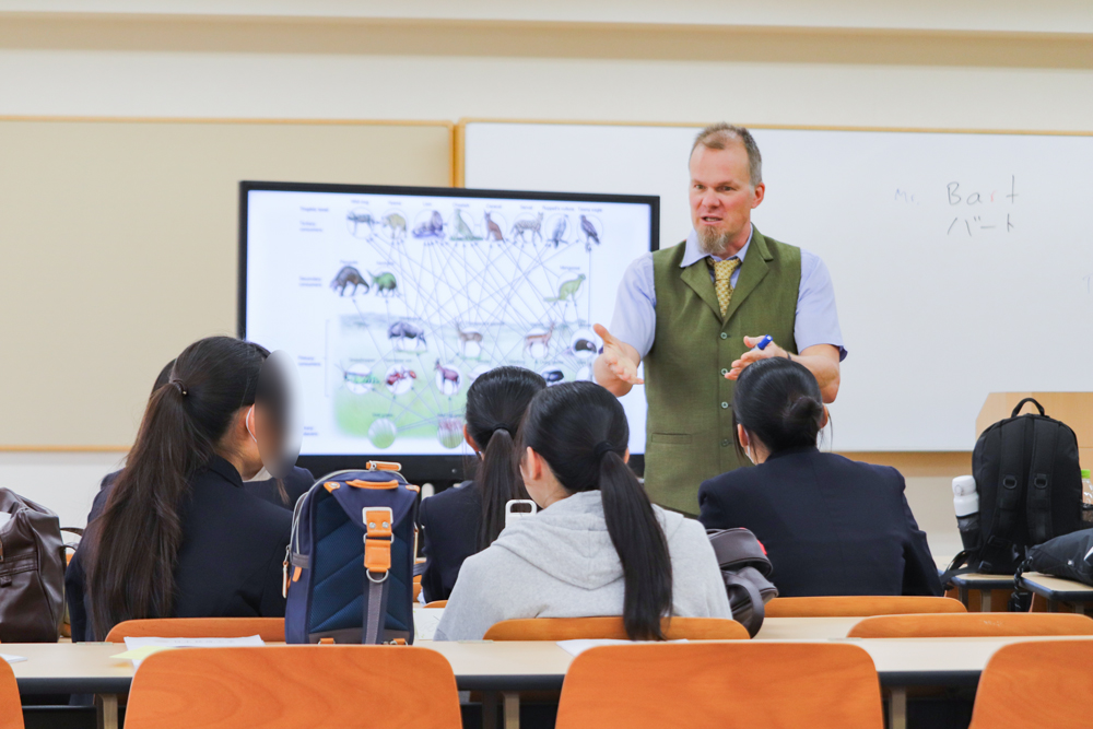 講義の中でデジレロイ講師は「ワンヘルスには医療関係者をはじめ、教育機関や企業など多くの団体が関わっている。あらゆる生物が関係し合いながら生態系を形成しているのと同じように、人や団体もコミュニケーションを取り合うことが大切」と話しました。