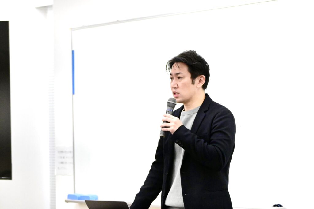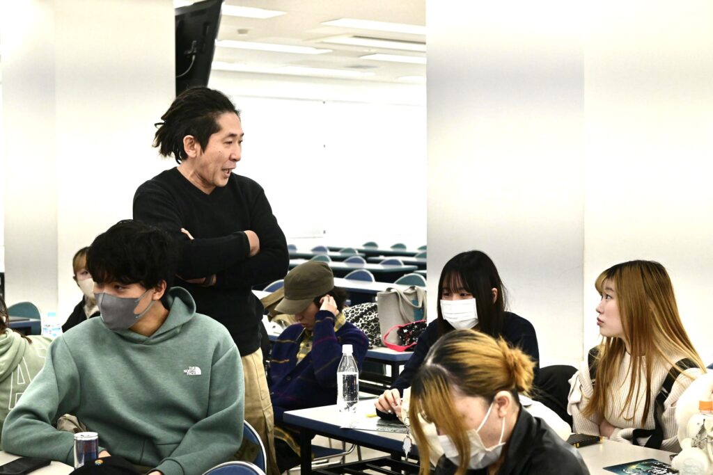 本学東京渋谷キャンパス・芸創プロデュース学科では、1・2年生の学生5チームが「ジェネレーションアワード2025」に挑戦します。本アワードへの取り組みの第一歩として、本アワードを主催する一般財団法人 UPDATE EARTHより、菅原敏泰氏をお迎えしキックオフ授業を開催。「イノベーションとは、普段自分がやっていることや使っているものに、ちょっとした気づきが加わることで生まれるものです。世の中を変える発明も、日ごろの小さな気づきや、身近なものの掛け合わせから生まれています。『こうしたら相手のためになるのでは』『もっと便利になるのでは』といった日常の思いや、友人との会話の中でふと浮かぶアイデア。そうした“種”をぶつけてもらう場が、ジェネレーションアワードです。発明や特許と聞くとハードルが高く感じられるかもしれませんが、このアワードは、そんな小さなアイデアを歓迎する場です。住んでいる場所や国籍、年齢は問いません。自薦・他薦も可能です。自分ならではの視点や感性を生かし、ぜひ挑戦してみてください」とイノベーションが生まれる土壌についてわかりやすくご説明いただきました。
