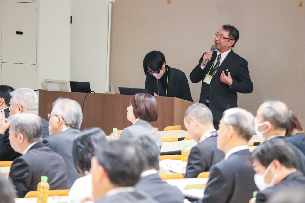 本会には福岡県内外の高等学校や中学校の校長をはじめ管理職の方々、福岡県知事部局、福岡県教育委員会、地域の諸教育委員会の関係者、生徒など合わせて約210人に参加いただき、今年度の高大連携事業についてプレゼンテーションを行いました。