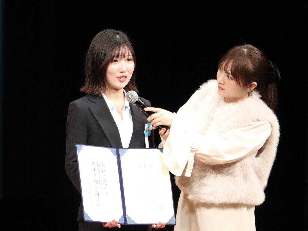 授賞式では一人一人に賞状が手渡され、学生たちは受賞の喜びと今後への意気込みを語りました。