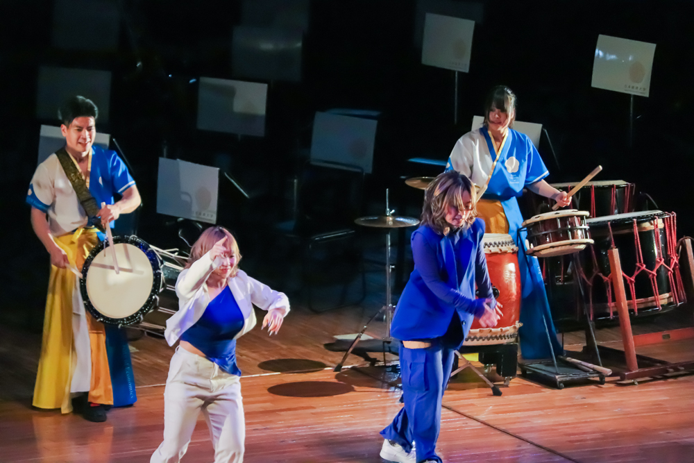 オープニングアクトでは、学生広報プロジェクトチーム「Blue Rose」と和太鼓部が登場。コラボステージも披露しました。