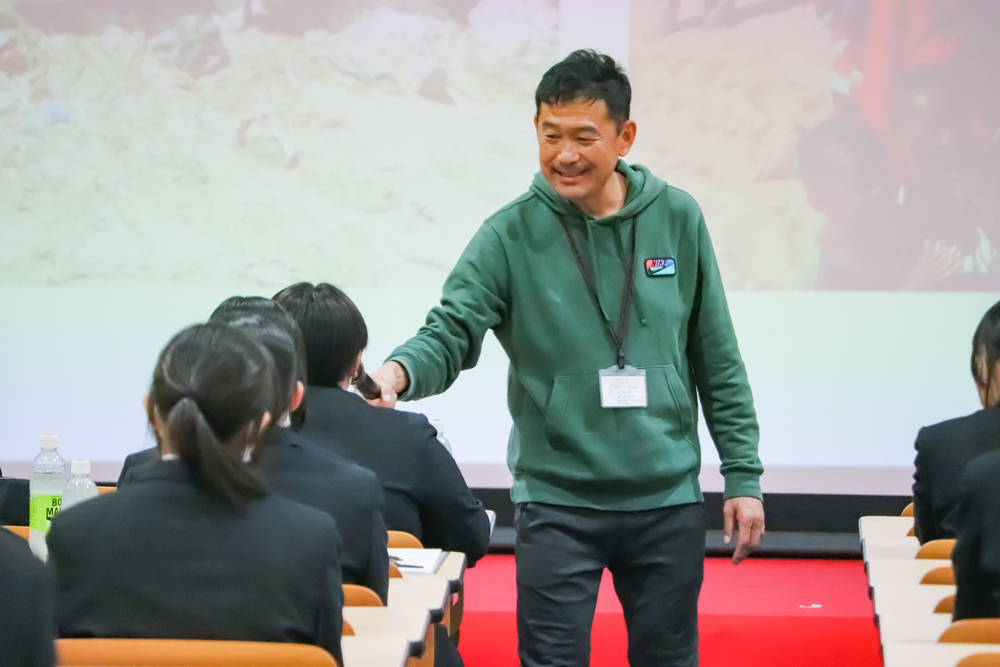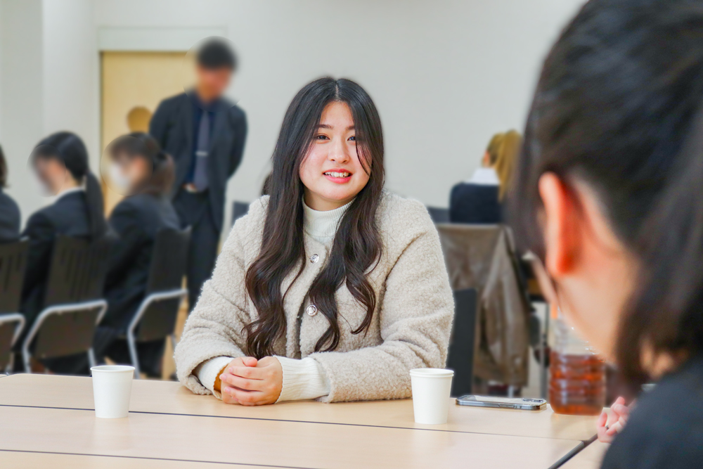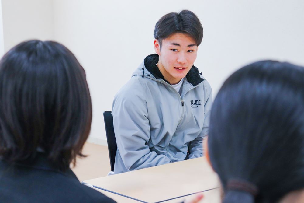 登壇した2名は森岡奏さん(健康スポーツ経営学科 1年)と共にその後に行われた在学生との交流にも参加し、キャンパスライフについてなど質問に答えながら座談会形式で話しました。