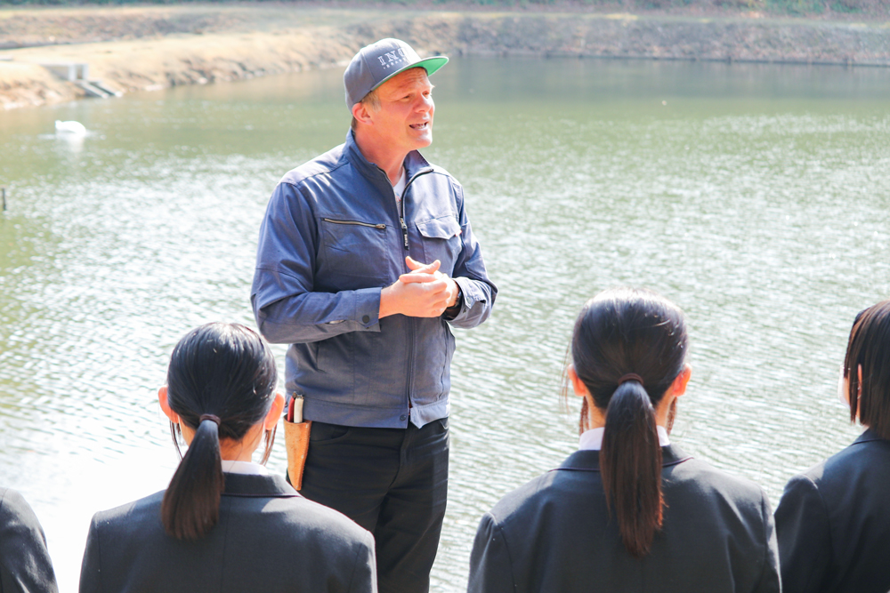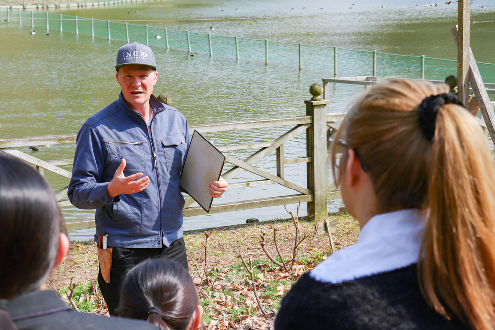 午後からはグローバルビジネス学科のデジレロイ・バルテレミ講師が、TG Rose Gardenの園内を案内し、「ワンヘルス」について解説しました。