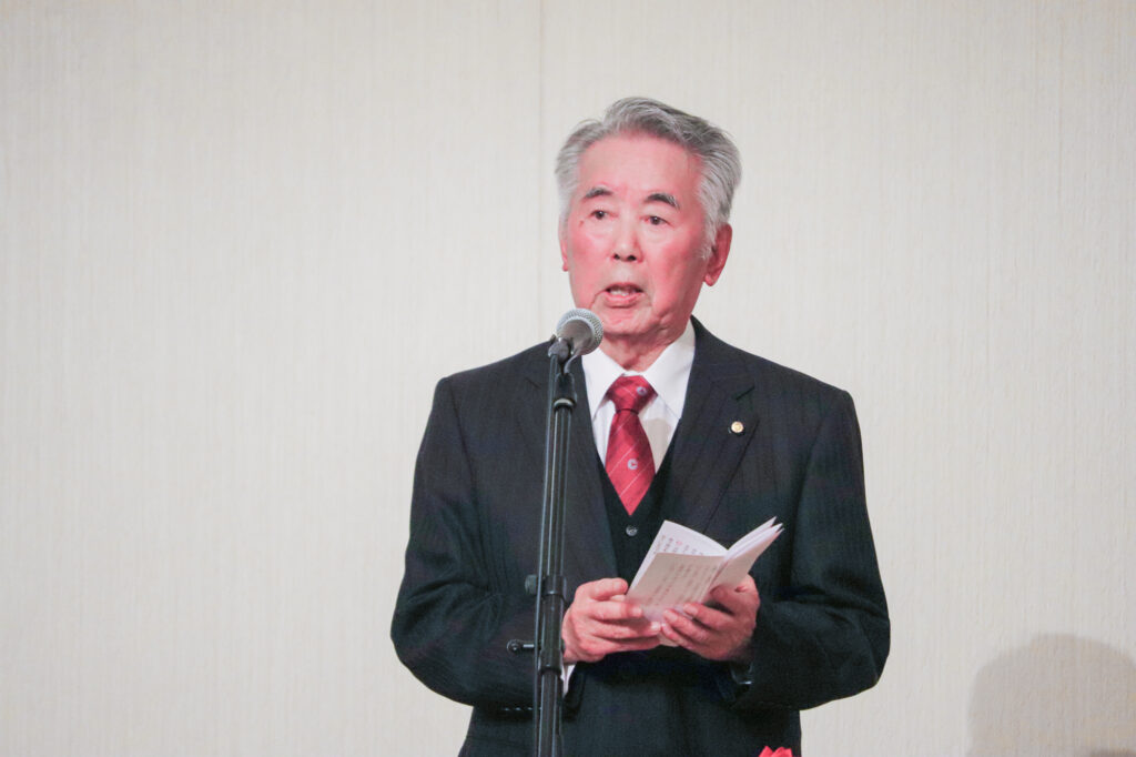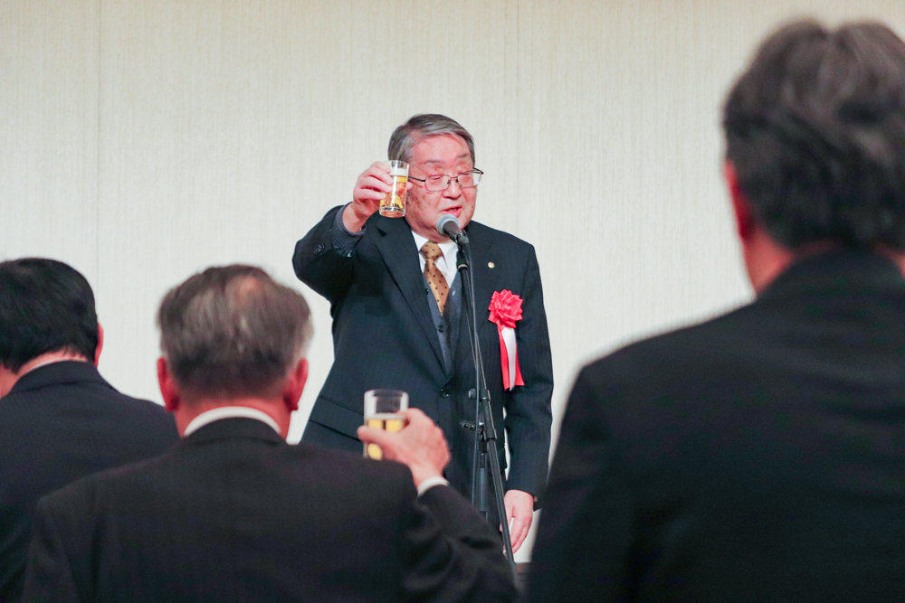 当日は髙原 清 太宰府市長をはじめ、寺崎 雅巳 福岡県教育委員会教育長、髙良 孝純 九州吹奏楽連盟名誉会長など多くのご来賓にご出席いただき、八尋 清繁 九州吹奏楽連盟副理事長に乾杯のご発声を賜り、盛大にお祝いの席を設けることができました。