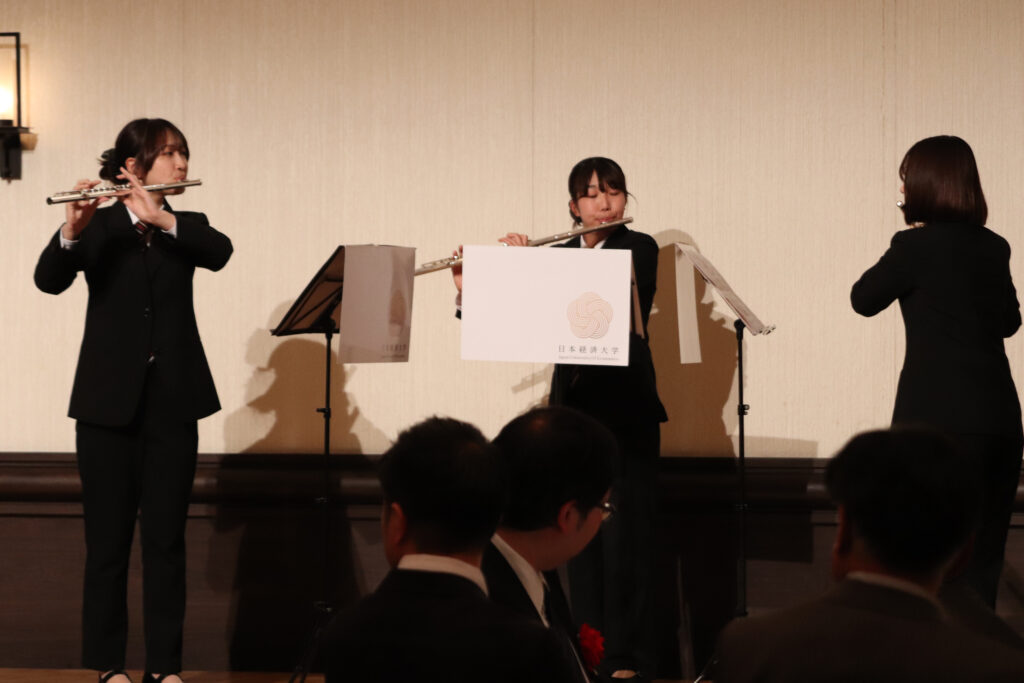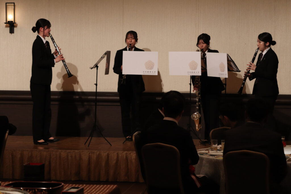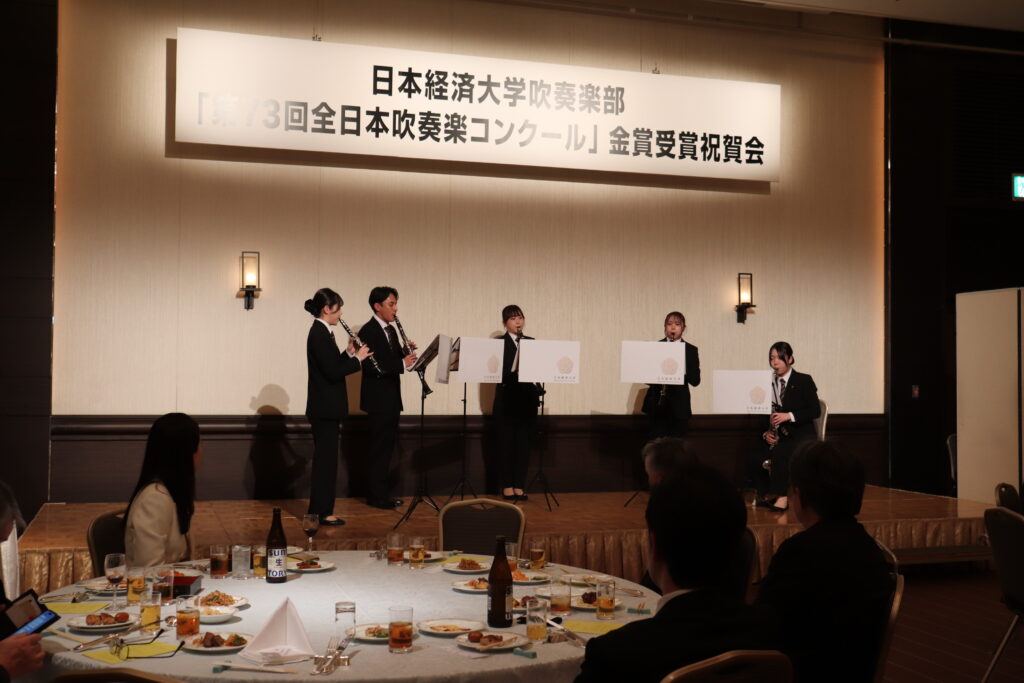 祝賀会では、部員によるアンサンブル演奏が披露され、華やかな音色が会場に彩りを添えました。