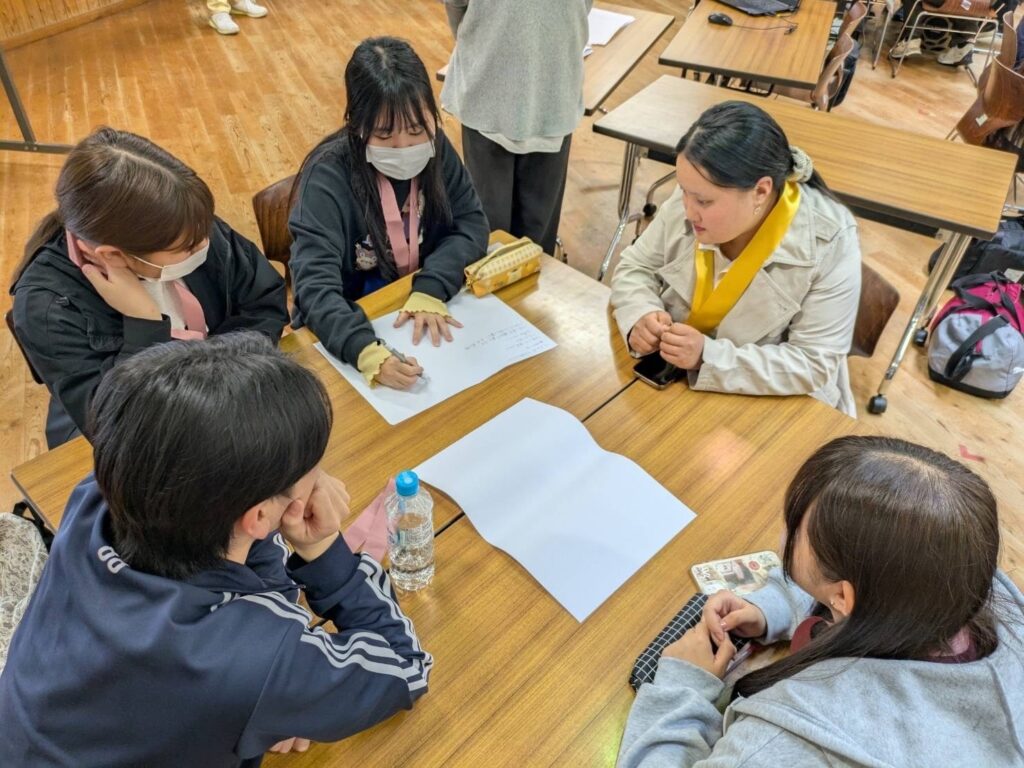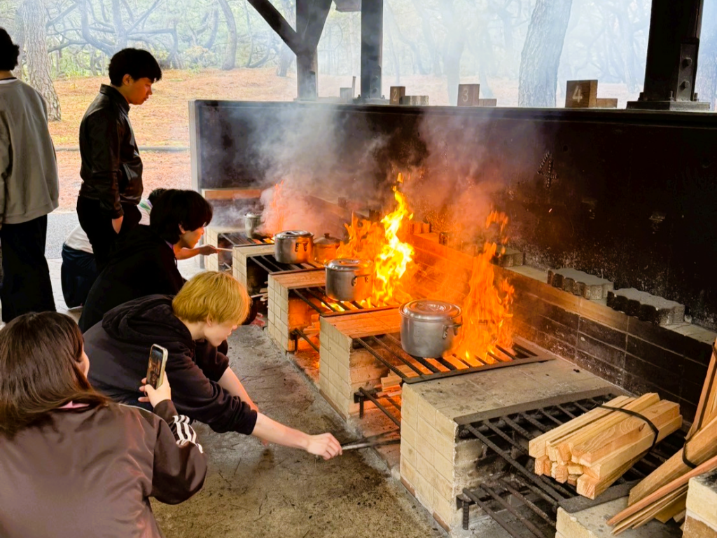 1泊2日の宿泊型で行いました。「古民家再生」をテーマにしたビジネスプランを考えるワークを行い、海の中道公園を散策しました。夜は野外調理やビンゴ大会を実施し、初対面ながら協力する姿が見られました。2日間の共同生活を通して時間管理や集団行動の大切さを学びました。
