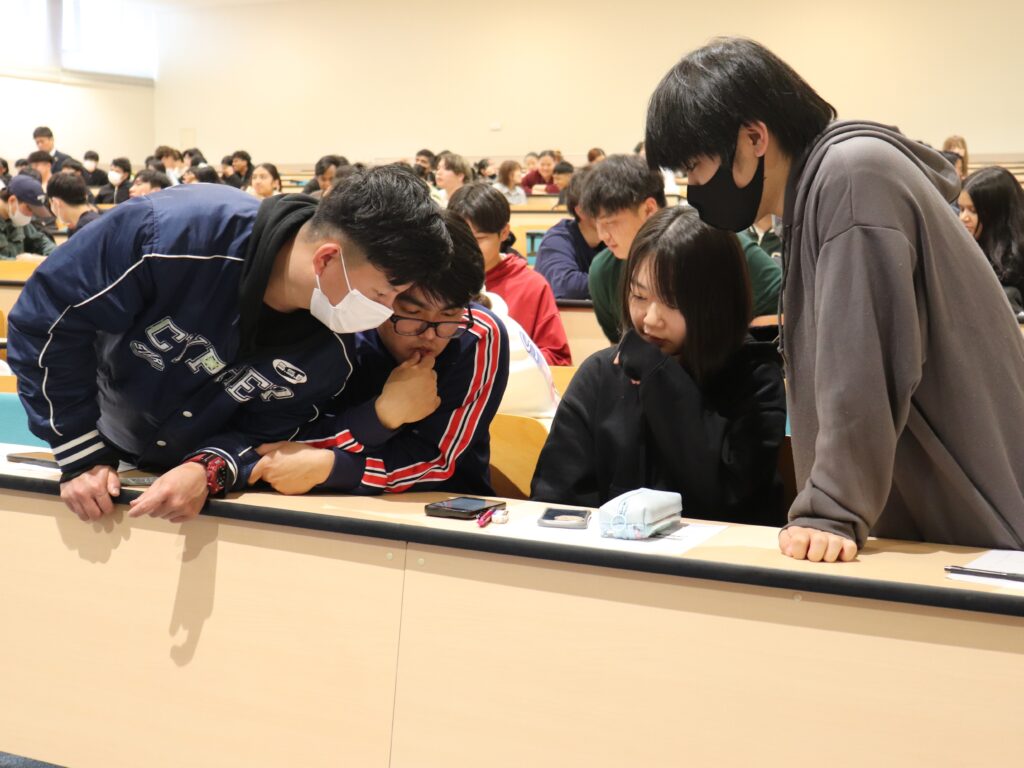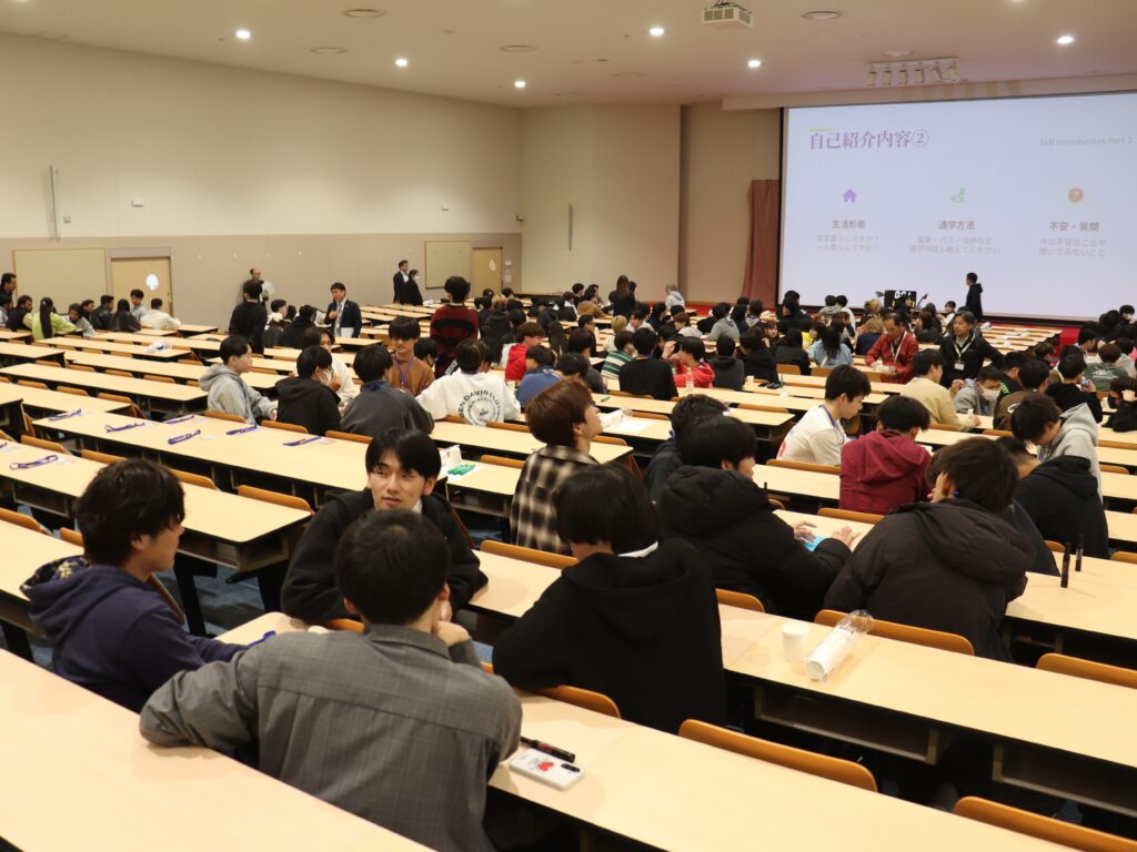 先生方による自己紹介では、担当ゼミや授業内容を紹介。続いて学内のコミュニケーションツールの使い方、学科内6コースの学びについて説明しました。多国籍クイズやパズル大会ではチームで協力し交流を深め、最後に本学で開催しているビジネスプランコンテストの案内や受賞者インタビューが行われました。