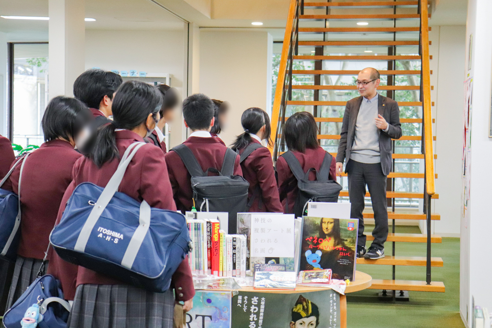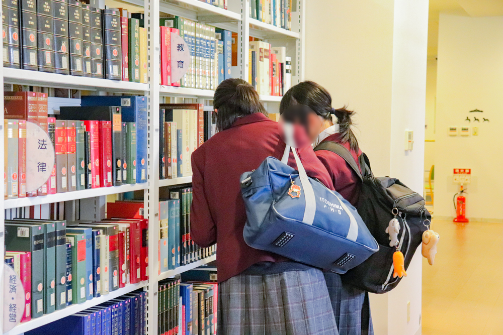 その後、本学の図書館を訪れ、気になる本を手に取ってみるなど思い思いに見学を楽しんでいました。