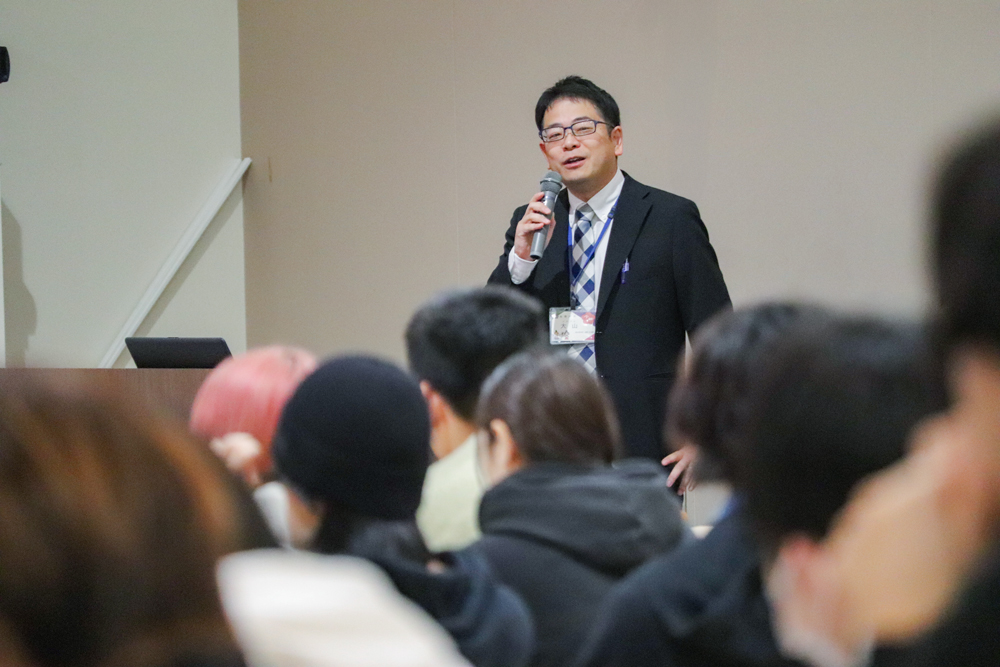 参加した学生に対して「人の役に立ちたいが、将来やりたいことが明確でない人にこそ、公務員という仕事をお勧めします。配属部署によって業務内容は多岐にわたり、また定期的に異動があるため、さまざまな業務を経験することができます」と呼びかけました。