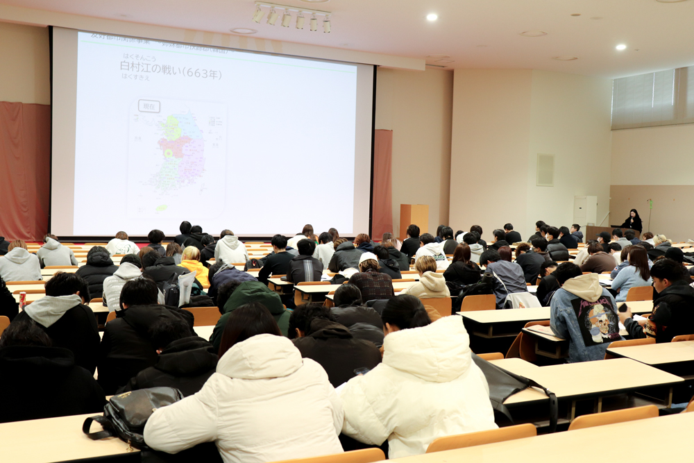 白村江の戦いでの関わりなど、古代から続く両都市の歴史的なつながりから始まり、現在実施されている交流プログラムの様子、そして国際交流員としての業務内容まで、詳しく説明しました。
